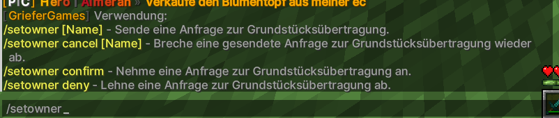 Den /setowner Befehl von GG, damit man Grundstück verkaufen kann.